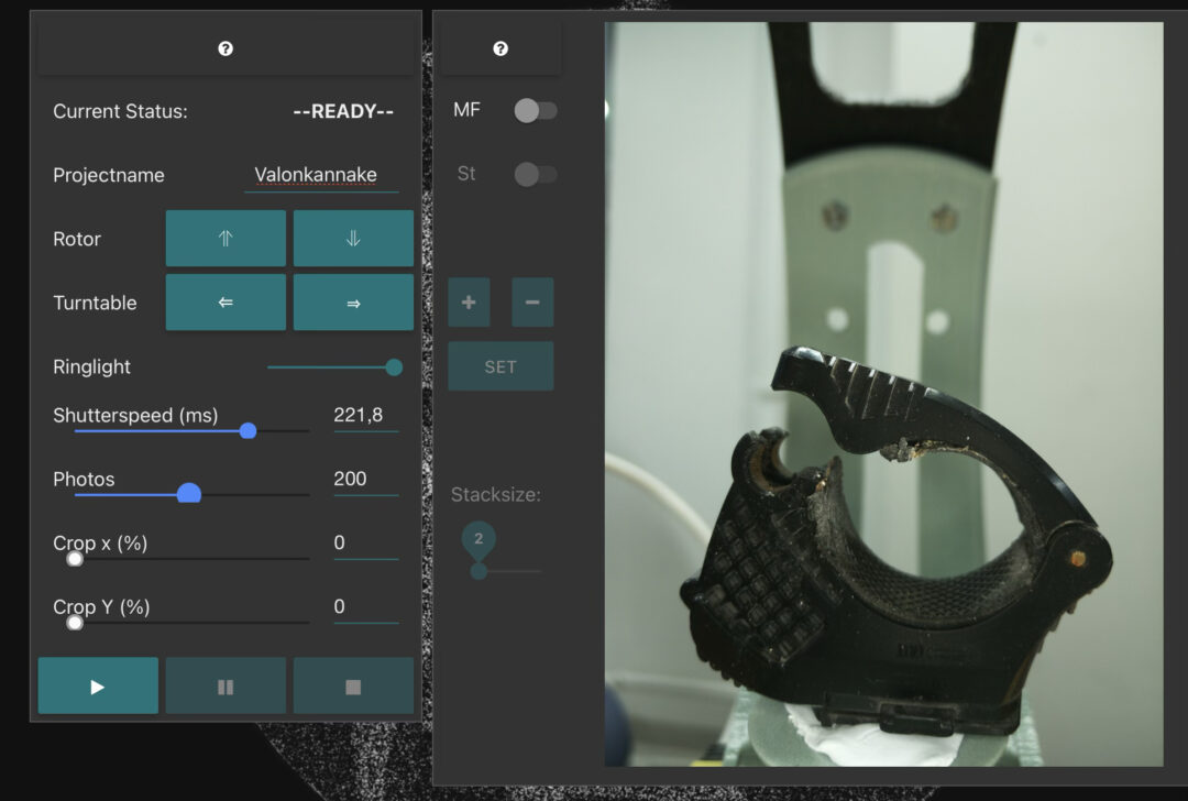 Nykyisellä kokoonpanolla skannattavan kappaleen maksimimitta on 9x9x9cm.
