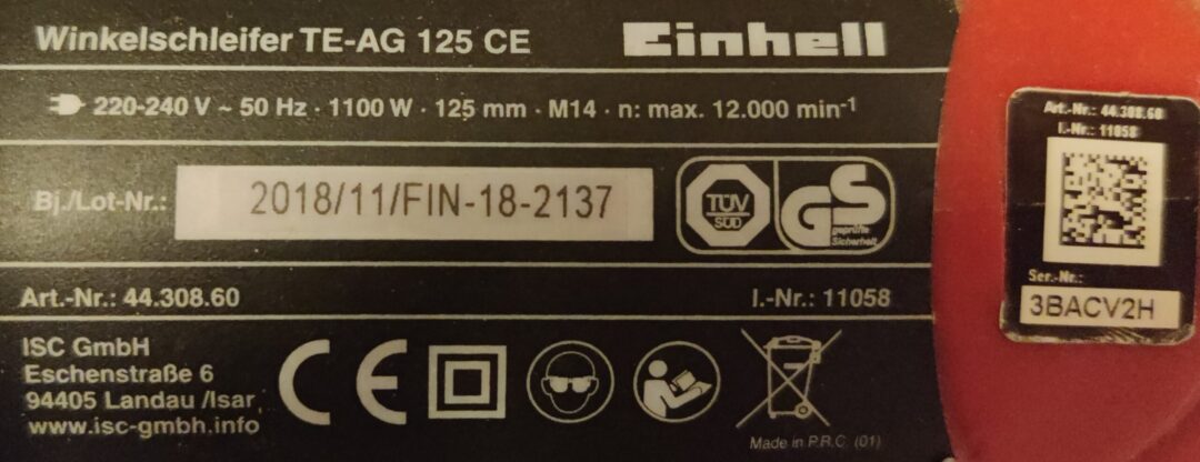 Kulmahiomakone: Einhell TE-AG 125 CE