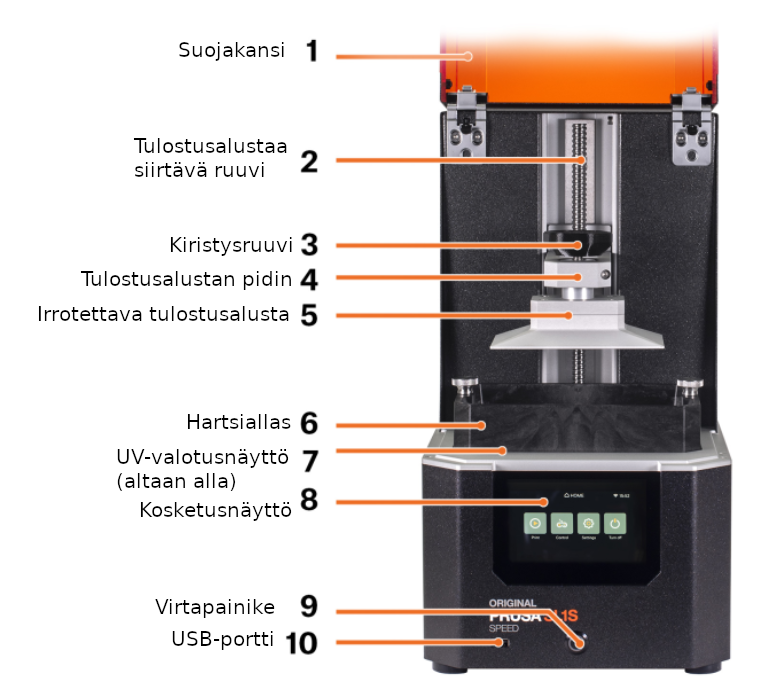 Prusa SL1S SPEED on valolla kovetettavaa hartsia käyttävä 3D-tulostin, joka sopii erityisesti hyvin yksityiskohtaisten esineiden tulostamiseen.